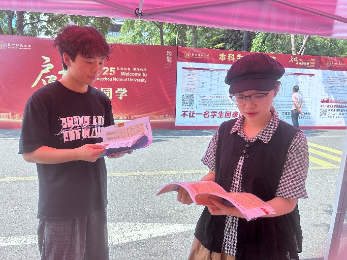 在新生报到时,校友办在仓前校区和下沙校区各报到点上放置“榜样的力量校友风采”大型喷绘,向新生及家长派发《校友》杂志;向校友们征集祝福视频,60余位奋斗在不同岗位不同专业的校友为2025级新生录制了祝福视频,校友办制作了“新生季&校友寄语”祝福视频合集,为2025级新同学送上祝福,勉励新生踔厉奋斗,认真学习不断探索,多参加社会实践活动,不断提高自身素养,努力奉献社会,度过美好而充实的大学时光。