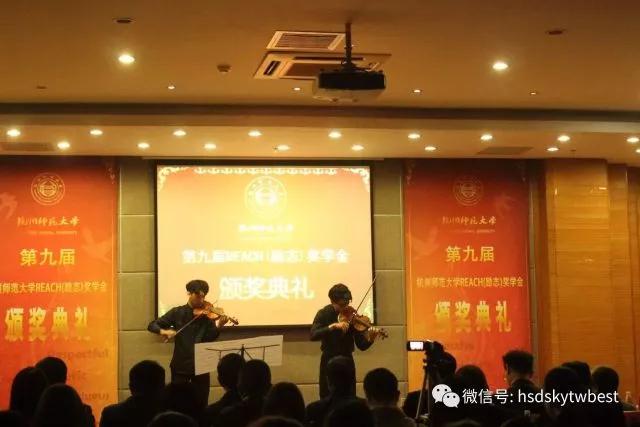 待来宾入座后,一首柔和的双人小提琴协奏响起,舒缓的乐曲盘旋、交织,给本次典礼带来了一个别样的开场。